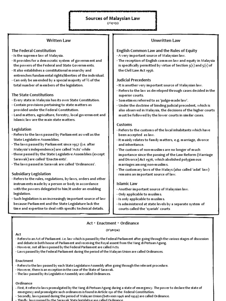 Malaysian sources of law comprises laws that have emerged from three significant periods which originate from; Federal level parliament there is only one parliament for the. The supreme law of the land—the constitution of malaysia—sets out the legal framework and rights. 1.10 sources of law the main sources of law in malaysia can be categories as follows a. Religious in common law and beliefs, local customs, opinion rules of equity. Mobile phones essay in english pdf. • written law is divided into: Federal constitution (malaysia judicial appointments commission) pdf natlex: The sources of malaysian law comprise: Sources of malaysian taxation law there are 3 sources of revenue law in the malaysian context and they are: Of malaysian sources essay law. Law which is a part of malaysian law and english law can be found in the english common law and rules of equity. A) historical sources religious belief, local customs, opinion of jurists, historical development.