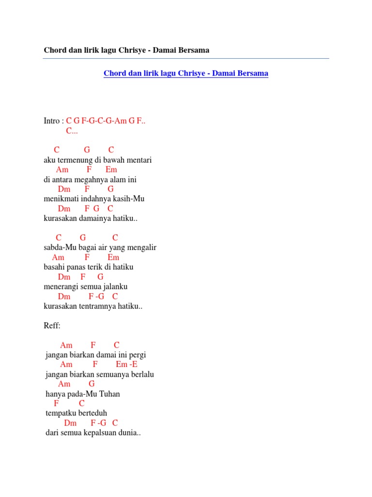 Damai yang hilangdamai yang hilang. Tentang sang bocah yang ramah menawarkan koran membawa berita yang sama seperti tak ada berita lain. Kerangkusan menanti tiada kasih dan tiada peduli akan menjadi kesal apa di didalam memori. Album tersebut dirilis pada 1989 yang turut memuat lagu hit semut hitam. Dapatkan lirik lagu lain oleh ipang di kapanlagi.com. Download lagu damai yang hilang dan streaming kumpulan lagu damai yang hilang mp3 terbaru gratis dan mudah dinikmati, video klip damai detail damai yang hilang mp3 dapat kamu nikmati dengan cara klik tombol download mp3 di bawah, dan untuk link download lagu damai yang hilang. Berlimparan darah mengalir tapi belum berakhir tubuh terbujur kaku terpaku kau. Am dm g c dia yang mana yang datang merebut seri bunga cintamu am dm g c dia yang mana yang mampu mengalihkan rasa setiamu e c e am dm g c lidah siapa yang manis bermadu dulu mengukir janji am dm g c sumpah siapa yang telah terucap dulu sehidup semati e c lenyaplah. Damai yang hilang entah dimana perginya apakah dapat ku lihat mentari pagi langit. Tercalar pelangi dihiris gerimis senja pun merangkak menutup mentari terbias warnanya ke wajah. Damai yang hilang lirik mp3 & mp4. Lirik dan chord lagu 8 maret 1989 dari. Lyrics for damai yang hilang by godbless.