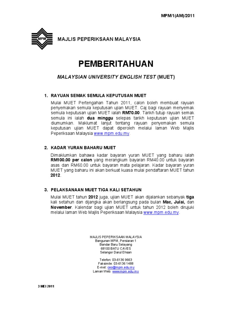 Syarat baharu muet untuk kemasukan ke universiti/pengijazahan. Please ensure the identity card number provided are correct. Jikalau anda sudah pun mengambil peperiksaan malaysian university english test ini peluang untu anda. Should have taken the examination on march 28 and get the result before april 18 (3 weeks after last sitting). Ada laman web khas ke yang perlu anda.