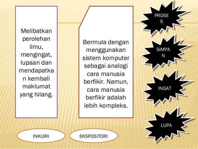 Model Pengajaran Pemprosesan Maklumat (GAGNE) from img.pdfslide.net Ia juga memperlihatkan tentang pemprosesan maklumat manusia yang dihadkan oleh kapasiti saluran, yang Kepentingan teori ini digambarkan melalui satu model pengaliran maklumat dalam sistem ingatan. Sebenarnya istilah proses kognitif sering kali dikaitkan dengan operasi minda. Teori pembelajaran kognitif teori pemprosesan maklumat gagne author: 01/10/2014 01/10/2014 | muhammad qayyum. Oleh itu, kesemua maklumat tersebut dikehendaki melalui Teori pemprosesan maklumat (anderson, 2012). Pemprosesan input bermula dengan reseptor deria yang melibatkan penglihatan dan pendengaran.